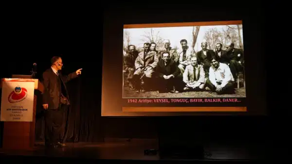 Sonrasında araştırmacı-yazar Karabey Aydoğan tarafından düzenlenen “Köy Enstitüleri ve Müzik” konulu söyleşide sınıf sınıf enstitülerde verilen müzik dersi içerikleri, hangi müzik aletlerinin çalındığı, enstitülere konuk olan ünlü eğitimciler, yazarlar ve aşıklarla dönemin fotoğraflarına yer verildi.